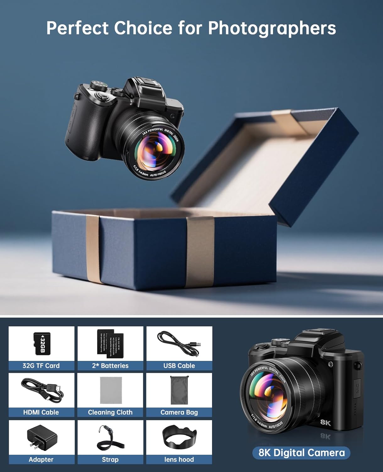 8K Digital Cameras for Photography Autofocus