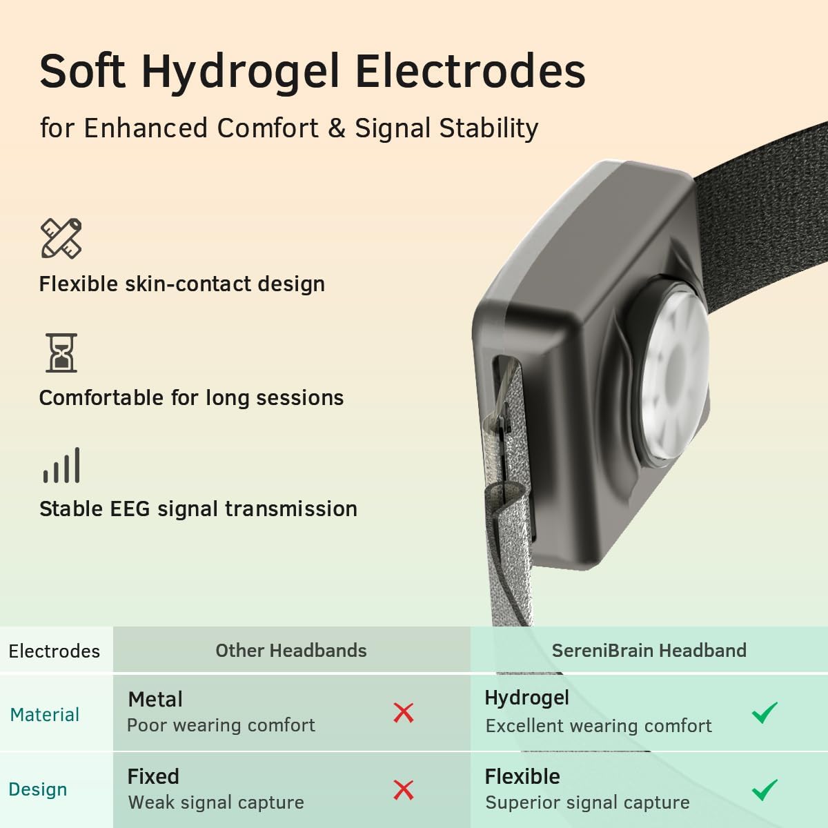 • Soft Hydrogel Sensors for Better Comfort & Signal Stability: Flexible hydrogel skin-contact sensors adapt naturally to your forehead, improving comfort and maintaining stable signal transmission. The low-impedance hydrogel interface enhances EEG signal quality for more reliable brainwave analysis.