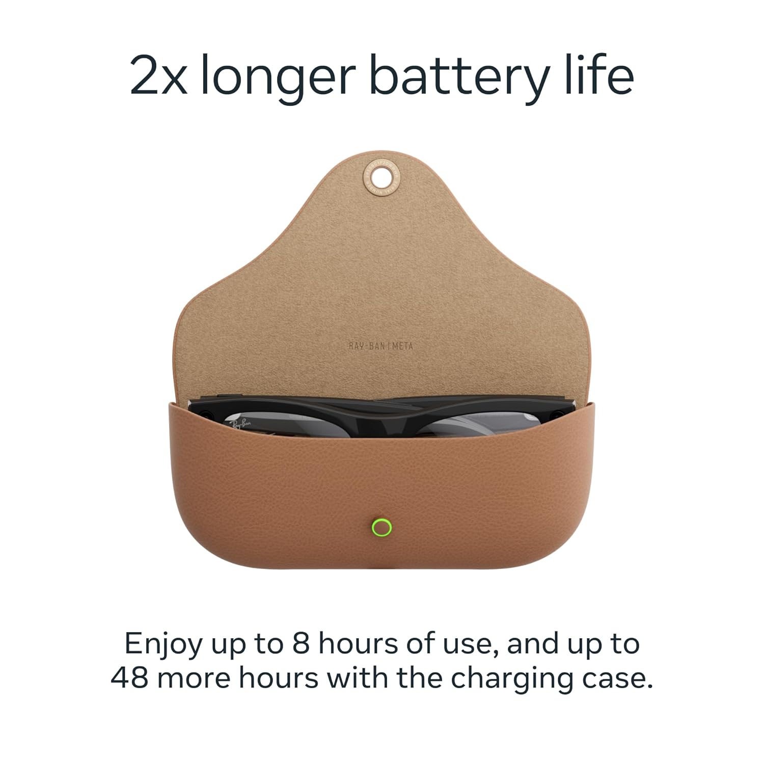 • On a full charge, glasses can last up to 8 hours with moderate use. With the charging case, get up to 48 hours of power on the go.